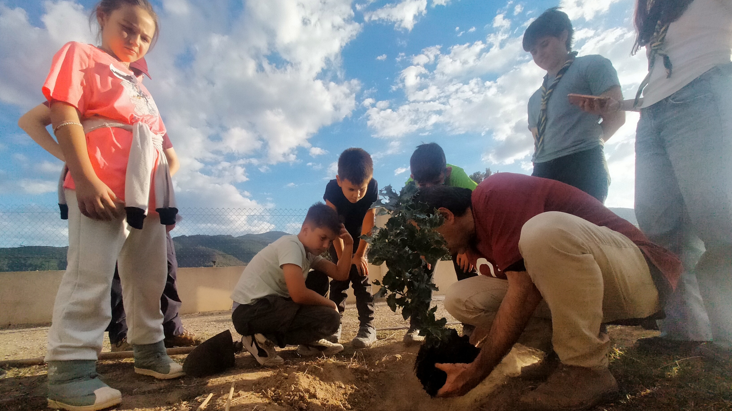 Durante o campamento tamén tivemos a colaboración do colectivo ecoloxista Amigas da Terra, co que desenvolvemos dúas actividades moi interesantes, por un lado un taller de compostaxe no que aprendemos a montar a por en marcha uns composteiros, onde transformar os residuos de materia orgánica nun estupendo fertilizante, un xeito moi natural e sostible para tratar este tipo de lixo, e por outra banda unha plantación forestal na que plantamos 10 árbores autóctonas: castiñeiros, érbedos, bidueiros e por suposto acivros. Esta última árbore é a que lle da nome ao noso grupo, ILEX, pois é o nome científico desta árbores (Ilex aquifolium).